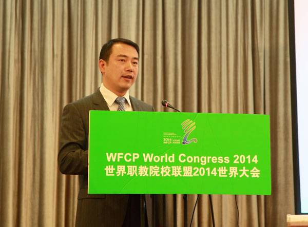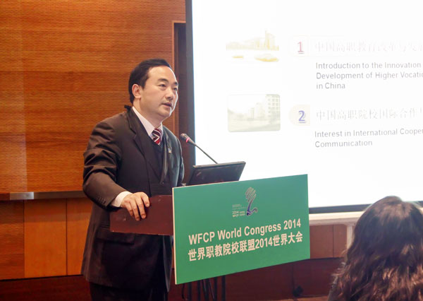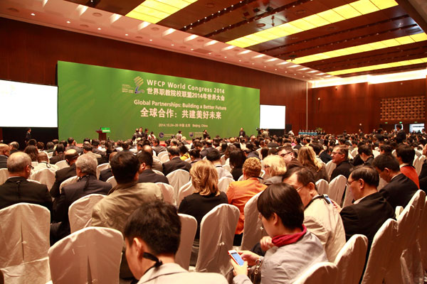 2014年10月24-26日,世界职教院校联盟(World Federation of Colleges and Polytechnics,缩写为WFCP)2014年世界大会(简称“WFCP2014年世界大会”)在北京召开。2014中国国际教育年会同期举行。职教分会理事长、我校校长孙爱武,职教分会秘书长、我校党委副书记、副校长吴学敏以及国际合作与交流处、国际教育学院、机械工程学院、能源与电气工程学院、艺术设计学院等有关人员组成的代表团参加两个大会的一系列重要论坛和双边会议活动。校长孙爱武主持WFCP世界大会全体会议,并在中国-美国校长对话、中国-东盟研讨会上作主旨演讲。党委副书记、副校长吴学敏主持中国-美国加州职教合作研讨会并作主旨演讲。此外,我校还参加了国际职教展和中外合作办学专业委员会理事会等活动。