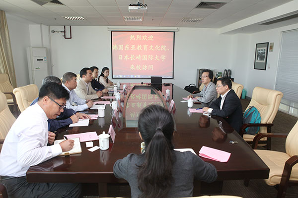 10月11日,日本长崎国际大学国际交流主任陈健、韩国东亚教育文化院院长朴己焕来访。党委副书记、副校长吴学敏以及国际处、文理学院、国际学院负责人与客人进行了会谈。双方就合作招收韩国留学生具体操作问题,如时间节点、数量、条件、与韩资企业的对接以及今后合作计划等进行了会谈并达成共识,并明确了下一步需要落实的主要事项。