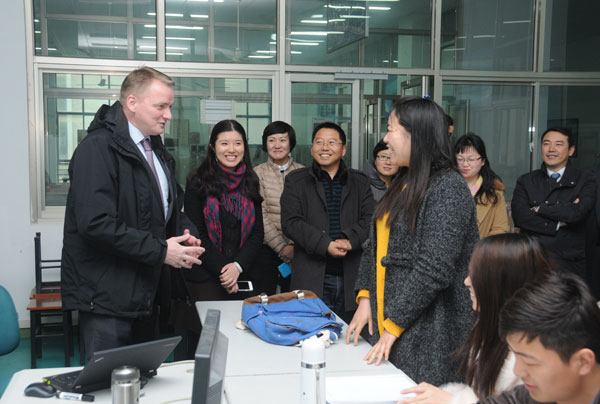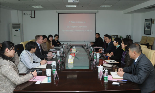 4月8日上午,博世汽车部件(南京)有限公司商务副总裁Stephan Czerwonka先生、人事总监邵勇先生、人事经理肖洁女士、培训经理芮红艳女士、副总裁助理陈育英女士、企业传播朱晓倩女士一行六人来我校考察交流。我校校长孙爱武、纪委书记苏小冬、发展合作处处长李彩虹、机械工程学院院长王晓勇、国际合作与交流处处长李建国、副处长张海宁等领导热情接待了他们的来访。