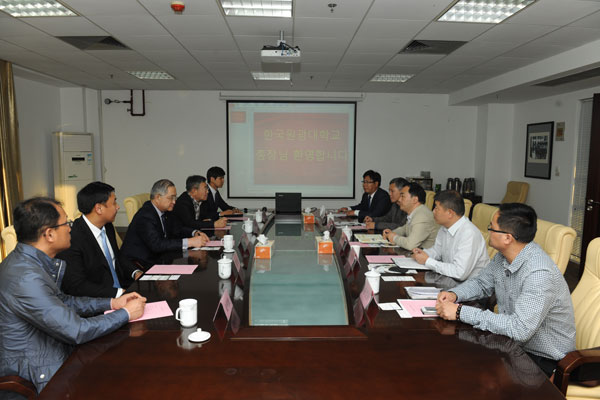 会谈中,吴学敏副书记对金道宗校长一行表示了欢迎,向客人介绍了学校的办学情况以及国际合作与交流情况。金道宗校长对我校的接待表达谢意,并介绍了圆光大学的办学情况及国际合作情况,希望能够在学生校际交流上开展合作。经过会谈,双方就在专业对接、教师访学、学生交流、学生作品联展等领域探索建立合作项目达成共识,认为可在近期签订两校合作的框架协议,然后就合作细节进行沟通,在互惠互利的基础上展开合作。