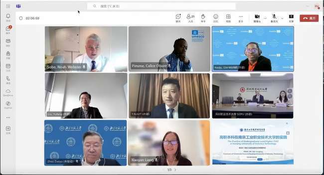 7月30日下午,我校受邀与联合国教科文组织(UNESCO)召开线上工作交流会,围绕中国的高职本科发展议题开展交流。联合国教科文组织高等教育处处长诺亚·索比(Dr. Noah Sobe)、联合国教科文组织总部和非洲地办,中非信托基金项目院校代表出席会议。出席会议的代表还包括世界银行首席教育专家梁晓燕、北京师范大学校务委员会副主任周作宇,以及深圳职业技术大学校长许建领等中外职业教育和高等教育领域专家。会议由联合国教科文组织中非信托基金项目高级项目专家、教育部职业教育发展中心研究员刘育锋博士主持,我校党委书记谢永华出席会议并作专题报告。