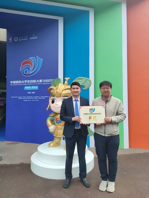 10月15日上午,为期3天的2025年中国国际大学生创新创业大赛总决赛在郑州大学圆满落幕。我校指导的国际学生参赛团队凭借过硬的项目实力与出色的现场表现,在激烈的角逐中脱颖而出,成功斩获大赛国际赛道金奖。在颁奖典礼上,金奖项目负责人哈萨克斯坦阿斯塔纳信息技术大学(Astana IT University)的阿勒泰·艾肯(Altay Aiken)受邀作为本次大赛唯一国际学生代表上台领奖,这是我校国际化人才高质量培养的生动体现。