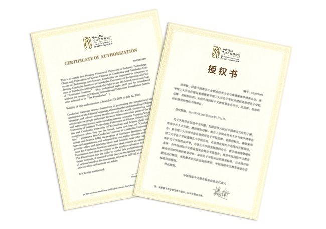 该授权书的颁发标志着我校合作共建的柬华理工大学孔子学院正式被纳入中国国际中文教育基金会管理,接受基金会组织开展的质量评估。