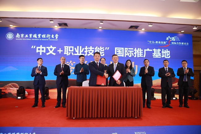 为推动中文+职业技能走出去,我校不断探索国际中文教育和职业教育协同走出去的创新模式。2020年11月,教育部中外语言交流合作中心与我校共建的全国首家“中文+职业技能”国际推广基地正式启动。该基地在推进专业标准、教学资源、国际化师资人才、职业汉语水平考试、国际化“1+X”证书等方面不断进行研究,为整合国际中文教育和职业教育资源,实现融合创新和协同发展进行了有益的实践探索。