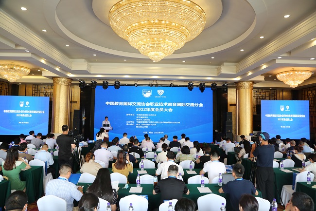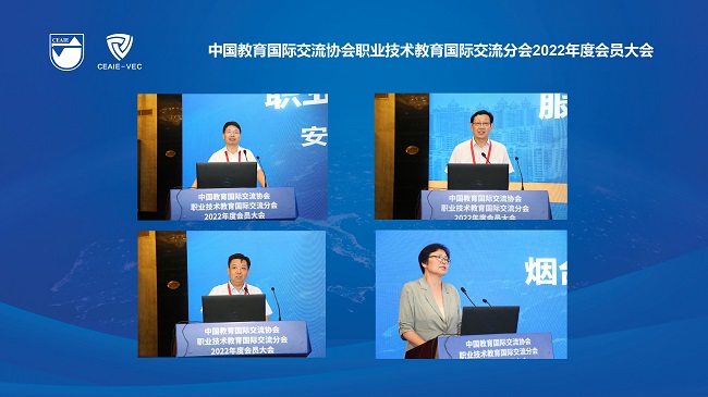8月5日-7日,由中国教育国际交流协会职业技术教育国际交流分会(以下简称“职教分会”)主办,烟台市人民政府和山东省教育厅为指导单位,南京工业职业技术大学、烟台职业学院承办的职教分会2022年度会员大会在烟台召开。教育部职业教育与成人教育司副司长谢俐,中国教育国际交流协会副秘书长余有根,中国教育国际交流协会职教分会理事长、我校校长谢永华,烟台市人民政府副市长沈健,山东省教育厅副厅长邢顺峰,中国教育国际交流协会职教分会秘书长、我校副校长孙雁飞,中国教育国际交流协会职业教育与培训部主任何培等出席会议。本次会议以线上线下结合方式举办,职教分会14家副理事长单位及60家理事单位代表出席线下会议,职教分会120家会员单位线上参会。