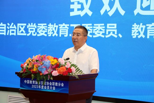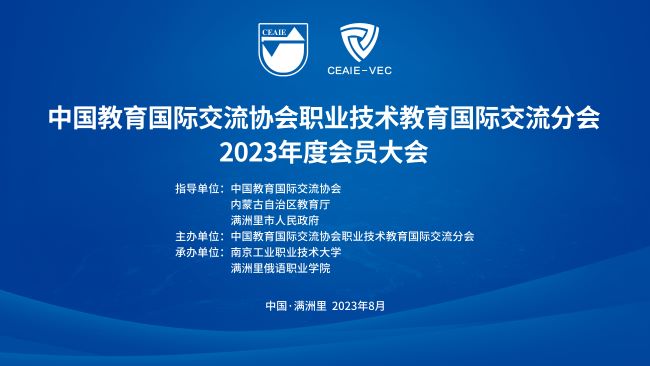 2023年8月6日至8日,由中国教育国际交流协会职业技术教育国际交流分会(以下简称“职教分会”)主办,南京工业职业技术大学、满洲里俄语职业学院承办的职教分会2023年度会员大会在满洲里召开。教育部职业教育与成人教育司司长陈子季、中国教育国际交流协会副秘书长宗瓦、内蒙古自治区教育厅副厅长张俊喜、中国教育国际交流协会职教分会理事长谢永华、满洲里市人民政府副市长郭晓芳、中国教育国际交流协会职教分会秘书长孙雁飞、中国教育国际交流协会职业教育与培训部主任何培、教育部职业教育与成人教育司教学处副处长邱懿等出席会议。