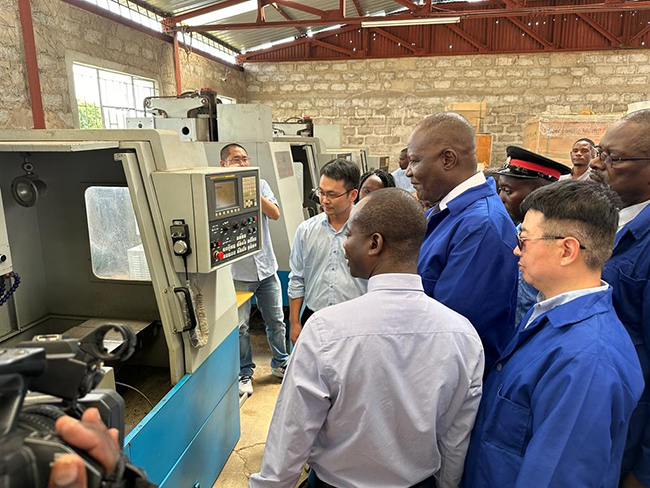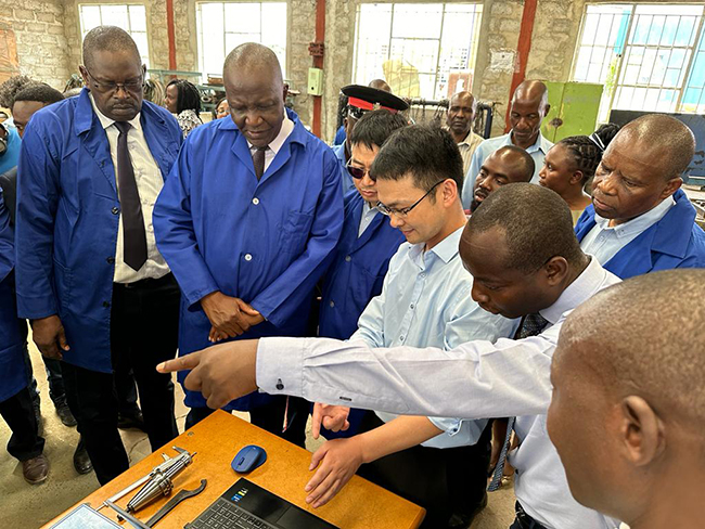 2月26日,赞比亚科学技术部部长费利克斯·穆塔蒂(Felix Mutati) 一行考察参观了培训现场,与学员进行了交流。他高度赞扬了中赞职院南工机电学院在技能培训方面所做出的努力。他指出,中赞职院数控加工专项培训的成功举办,不仅为赞比亚培养了一批掌握先进数控加工技术的师资,更为当地制造业的转型升级提供了有力支撑。