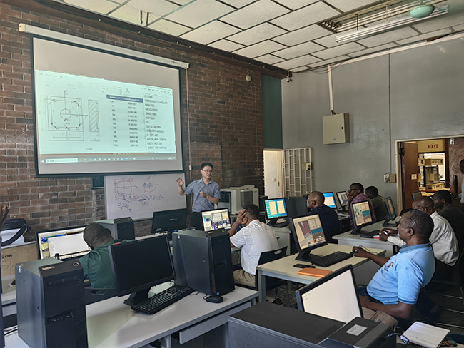 培训过程中,学员们展现出非常高的学习热情,通过学习和交流,他们的专业知识取得了显著的进步。铜带省大学机械工程专业教师克里斯多夫(Christopher)说,数控加工仿真软件里面包含各种品牌、各种型号的数控机床,学员们可以选择自己所熟悉的机床进行操作,提高学习兴趣和学习效率。铜带省大学机械制造系主任恩佐•莱恩(Enzoh Langi)认为,本次培训对赞比亚培养具有数控加工实践技能和知识的工程师和技术人员具有重要意义,提供了他们所急需的重要技能。中赞职院机械制造专业教师维克多(Victor)表示,这次培训采用的先进数字化仿真方法为教学提供了极大便利,更有助于学员快速掌握这项技能。