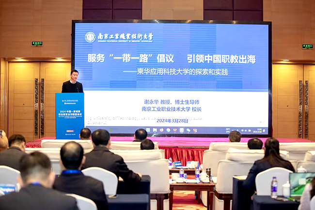 2024年3月28日,2024中国—柬埔寨职业教育合作联盟会议在常州市成功举办。我校党委副书记、校长谢永华应邀出席会议并以《服务“一带一路”倡议,引领中国职教出海—柬华应用科技大学的探索和实践》为题做主旨发言。本次会议聚焦中柬职业教育高质量发展主题,邀请教育部职业教育发展中心主任林宇、教育部职成司综合改革处一级调研员李红东、江苏省教育厅对外合作与交流处副处长庾卫东、柬埔寨国立理工学院校长本·菲林、柬埔寨国家技术培训学院校长约克·索提等嘉宾出席会议,来自中柬教育主管部门、职业院校和行业企业的100余名代表参加会议。